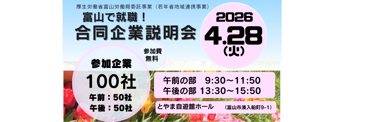 2026/03/10 2026/4/28「富山で就職!合同企業説明会」の参加企業を募集します。