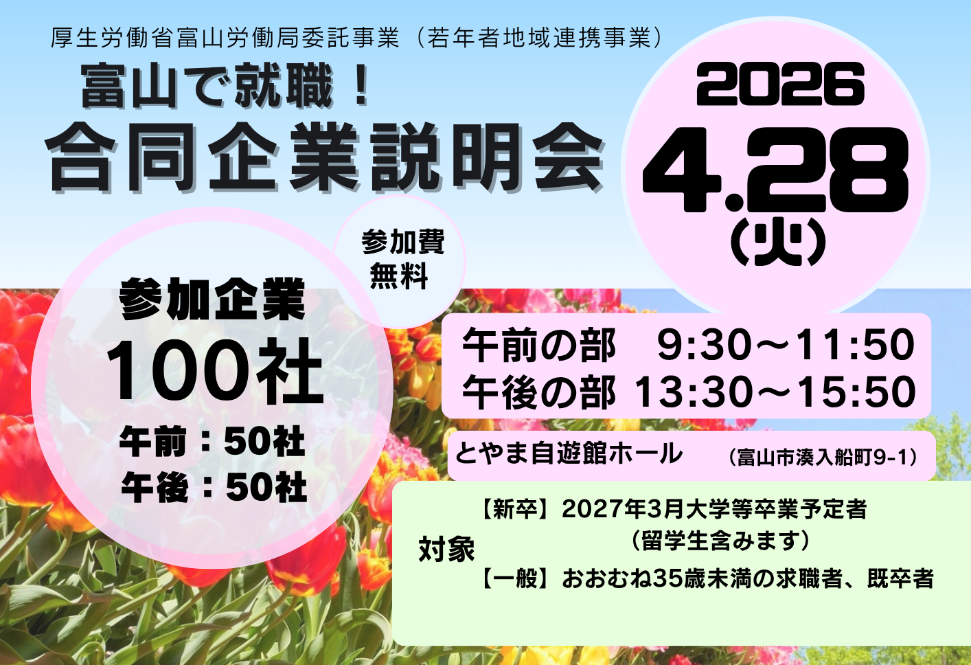 4/28(火)【27卒・一般対象】富山で就職!合同企業説明会を開催します。
